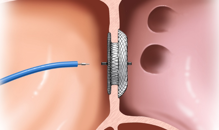 Под анестезией через специальный катетер проводится окклюдер. Это особое приспособление, позволяющие установить заплатку на месте дефекта. Благодаря ей через некоторое время отверстие зарастает.